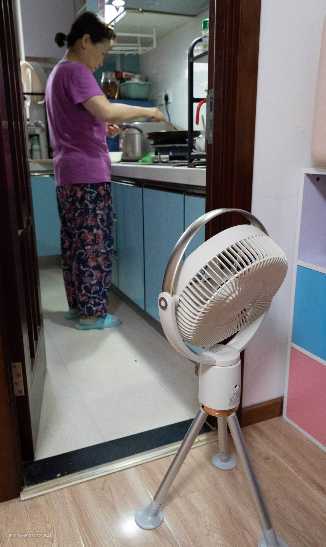 最后来总结下,虽然现在大部分家里都使用空调,很少使用电风扇了!但这款便携式无线电风扇的使用环境还是十分丰富的!例如我家这样的一居室,空调打开后,厨房几乎是吹不动凉风的,做饭经常一身臭汗!这时电风扇就派上用场了!摆放在厨房一角,也不占用过多空间。