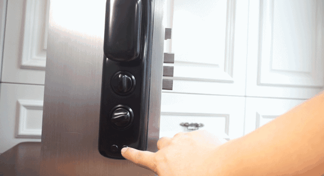 而内外门锁的底部都有一个Micro USB接口,其中内侧面板下方的是给锂电池充电口(当然也可以直接拆下锂电池充电),而外侧面板下方的接口是在电池电量耗尽后又没有机械钥匙情况下,应急供电用的。