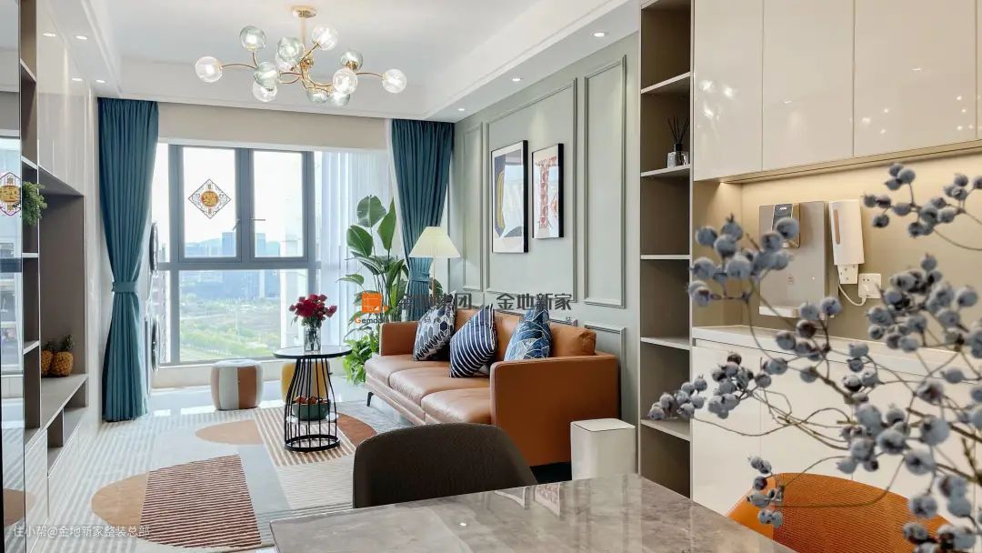 客厅省略大型中央茶几,换成更具观赏性的小型茶几,适当留白,腾出位置做更多喜欢的事,视觉上显现出原本应有的大气与宽敞。