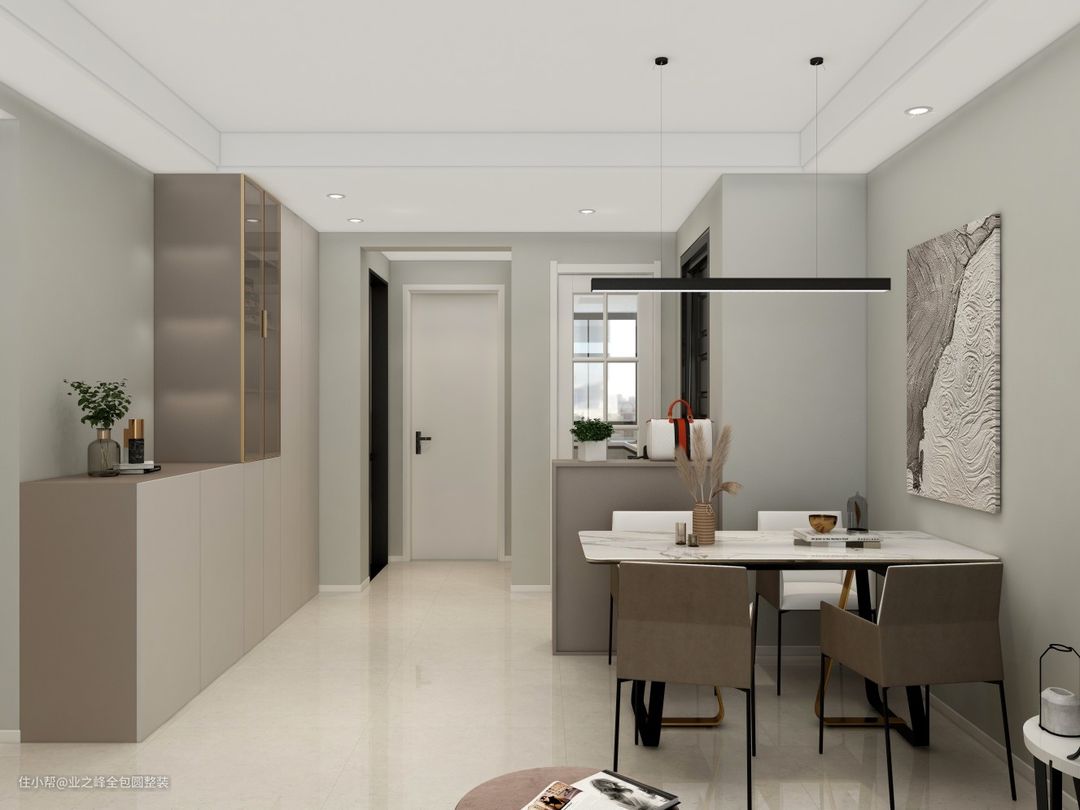 因为是简约风,为了不致空间单调,在软装搭配以及墙面乳胶漆调色都是刻意为之,才让空间拥有温度。