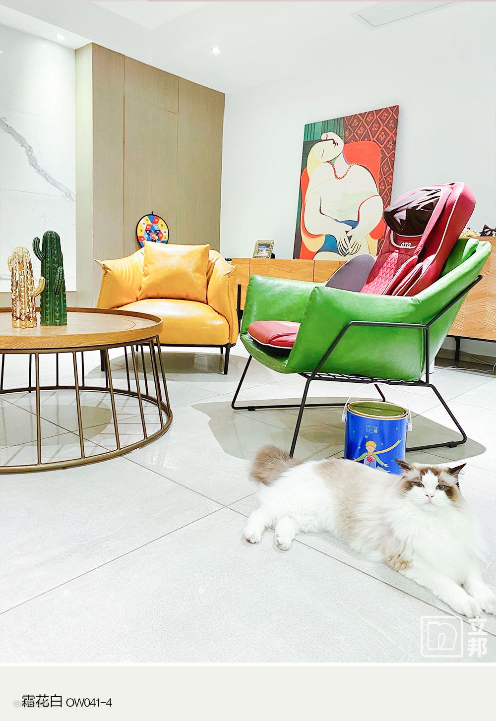 由于景景miao喜欢极简风格,所以墙面大面积使用了OW041-4霜花白,整体营造了轻盈透亮的舒适氛围。当墙面为白色时,家居软装可以选择一些跳脱的亮色,比如蓝色,黄色,绿色等等,为空间定下高级基调,赋予清新迷人的艺术气息。