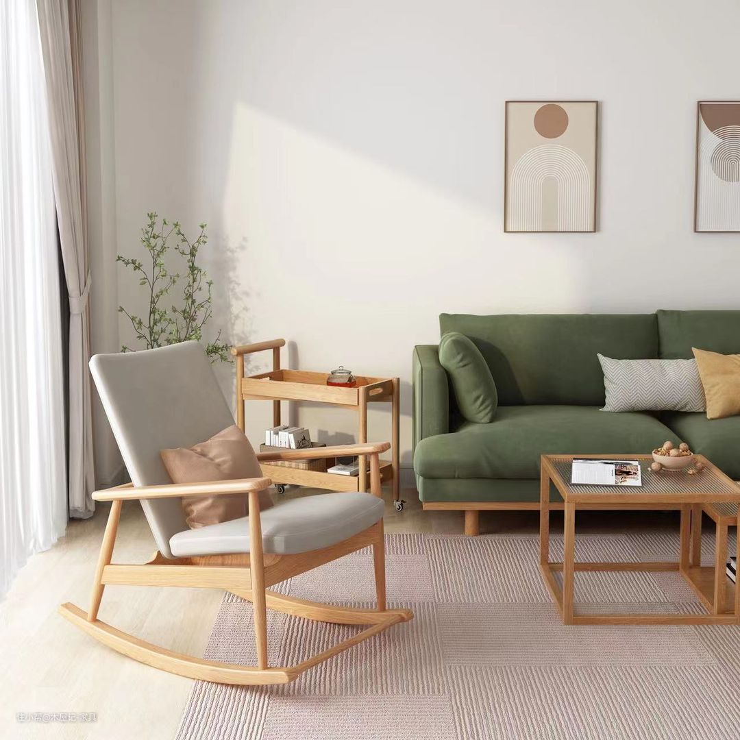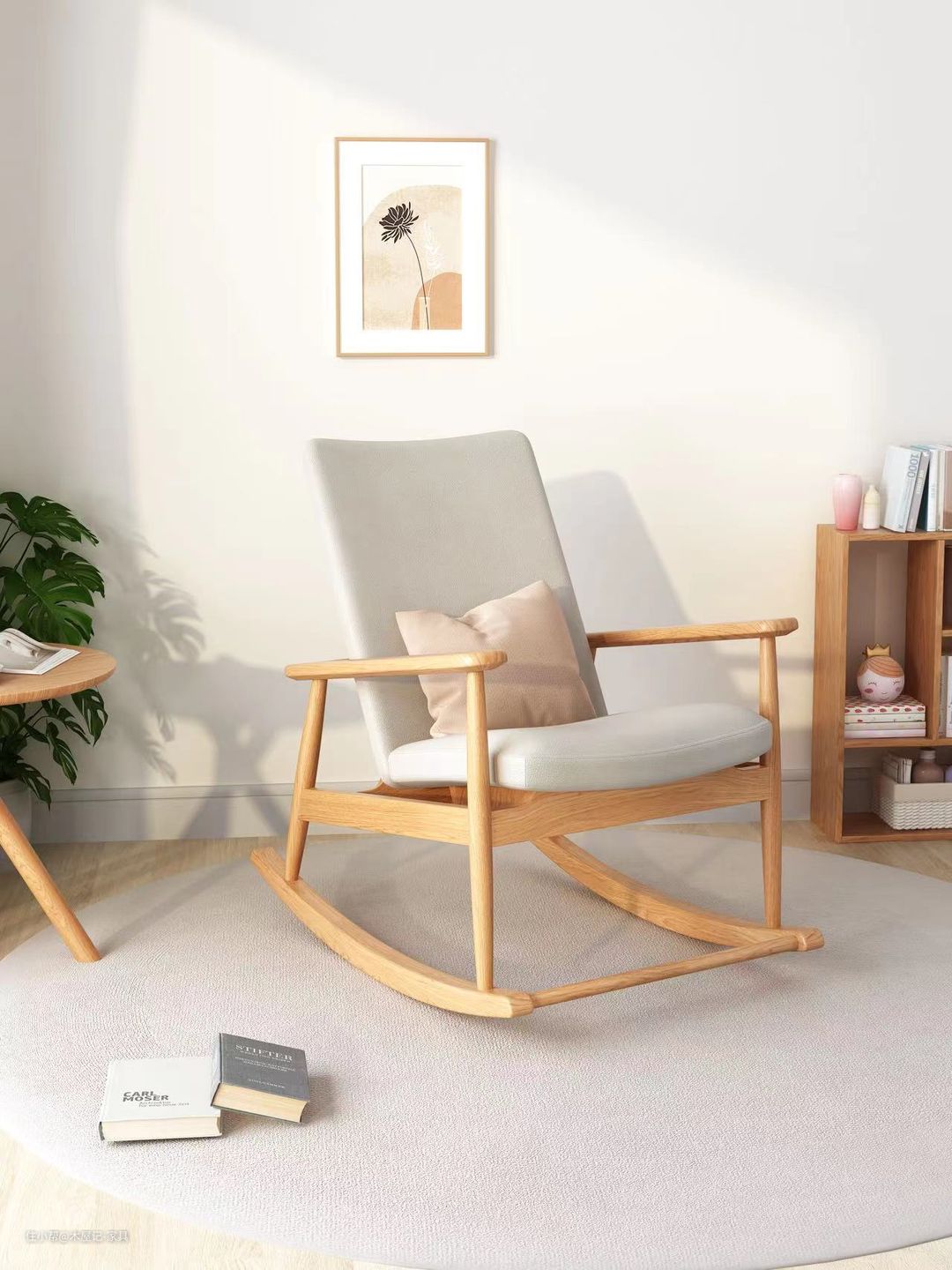 一张精致优雅又足够舒适的摇摇椅~轻摇慢晃实木弧形基座