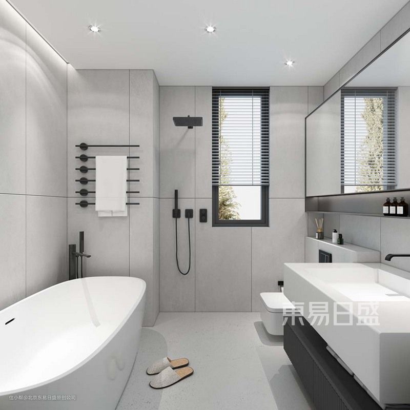 整个空间墙面铺大砖,地面铺大砖。使用了更多的空间,配备了淋浴和浴缸,以满足不同的沐浴需求。