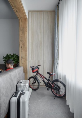 为了更加满足客厅到阳台的延伸感,可以利用半打通留下的门垛。