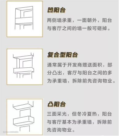 在结构上看,阳台分为凸阳台、凹阳台、复合型阳台;