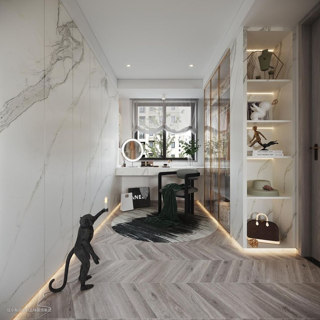 - 女业主是位很爱打扮,很注重形象的女孩,衣物很多,经常为收纳衣物而烦恼,所以设计师设计了大型衣帽间来解决女业主的烦恼。