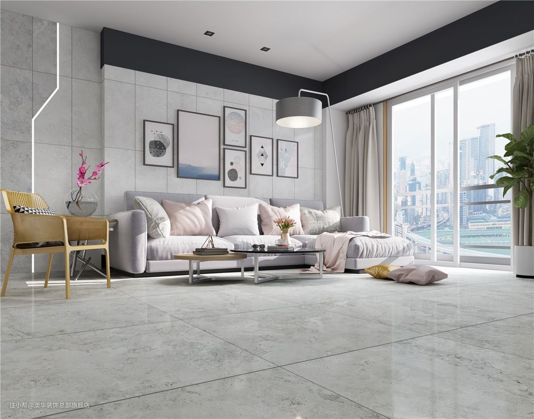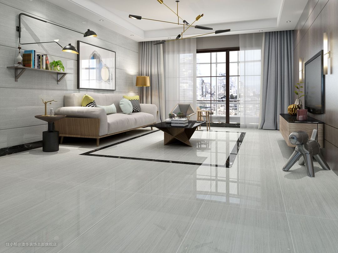 抛光砖外观光洁、亮面,能够给人简洁、大气、明亮的视觉效果,砖体坚硬耐磨、无色差、 抗弯曲强度大、防滑,非常适合客厅地面铺装。不过抛光砖易脏,在清洁上要多花点功夫。