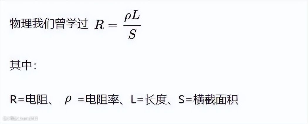▲单位长度内导线的电阻由电阻率和横截面积决定。横截面积越小电阻越大,也越容易在高电流的情况下产生过热现象,所以我家装修10A插座为了安全配到2.5mm²铜芯线。