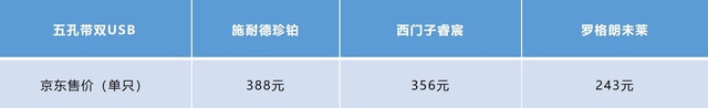 ▲三款5孔带USB插座定价一览。