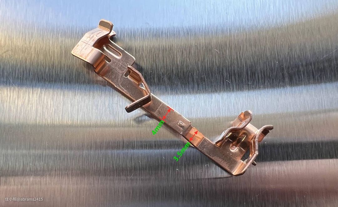 ▲施耐德珍铂载荷件厚0.5mm,最窄宽度为3.4mm。说实话还没罗格朗未莱好一些。