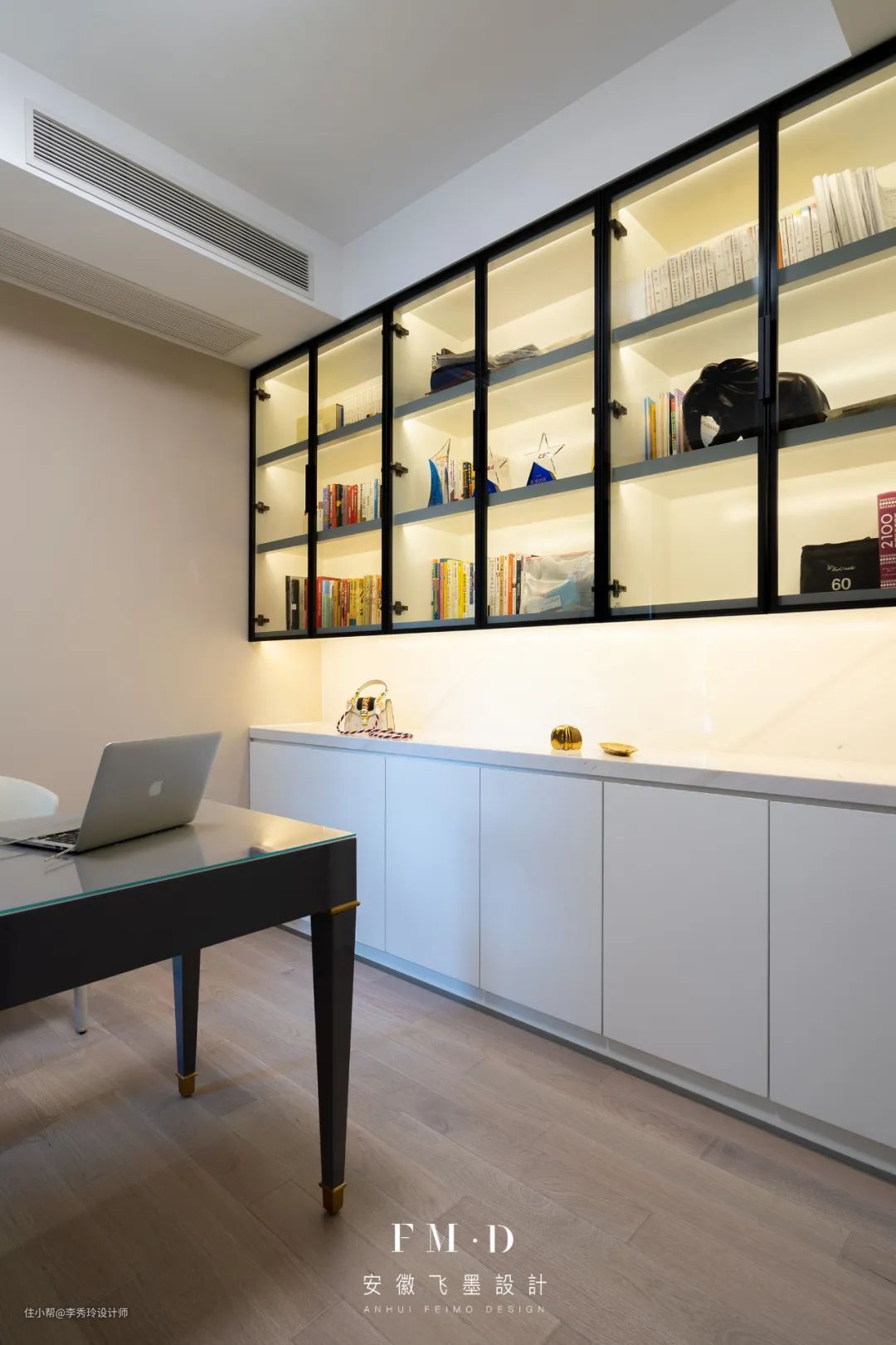 6、板材+玻璃柜门,会拥有极强的造型感: