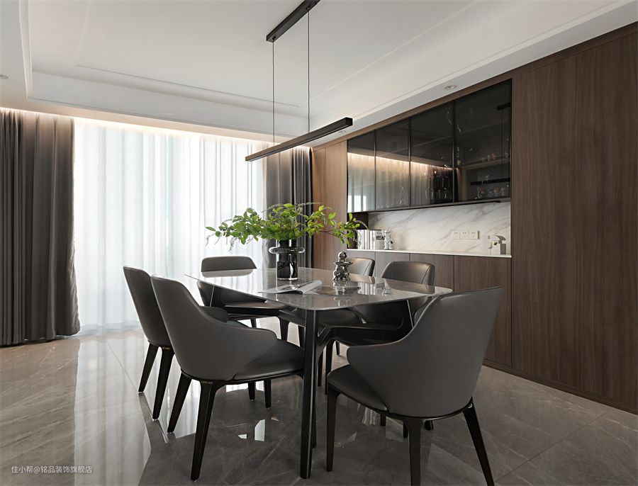 第六种餐厅照明设计:这家餐厅的光线恰到好处,在照明设计上有主次关系。虽然主吊灯的光源非常明亮,但一点也不耀眼。天花板上的灯带与主光源有良好的递进关系,大理石地面的反射强度也起到了一定的作用。在选择吊灯的形状和光源的色温时,我们必须根据餐厅的环境选择吊灯,观察主色倾向。