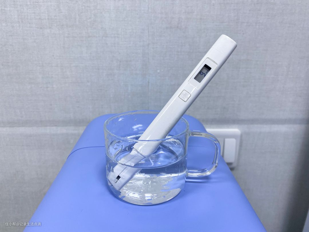 为了验证控制面板上显示的出水TDS值是否准确,我们用TDS水质检测笔来测试下,实际测得的数据和控制面板显示的一样,均为9ppm。
