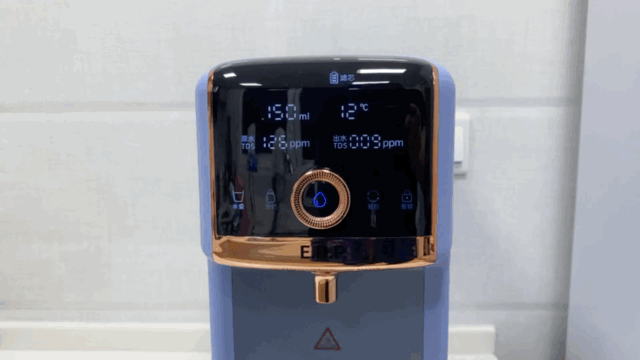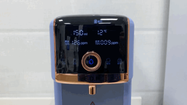 宜盾普蓝海豚净饮机的滤芯配置了150G的大通量RO膜,制水速度可达0.39L/min,完全不用担心热水断流。这款净饮机不仅制水快,而且取水速度也很给力,可达到1L/min。有小伙伴可能要疑惑了, 为何制水速度≠取水速度,其实目前市面上的净饮机都是内置净水箱的,原水经过滤芯过滤后会先储存在水箱中,所以取水速度会更快。