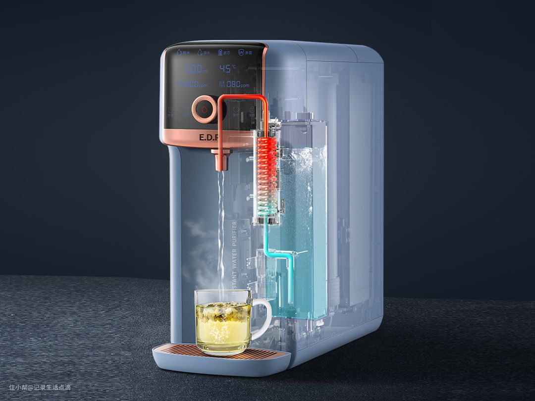 你可以把净饮机放在餐桌上,让喝水、泡茶变得更方便。