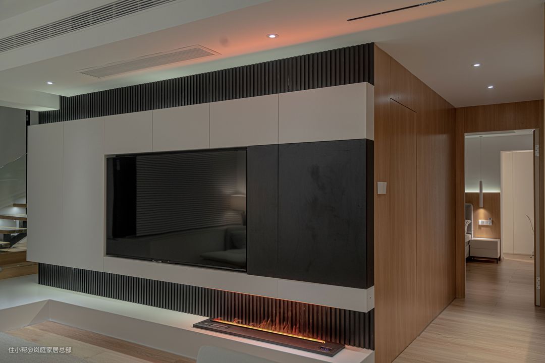 将电视背景墙做成整面收纳柜,收纳空间大大增加,住起来更舒心。