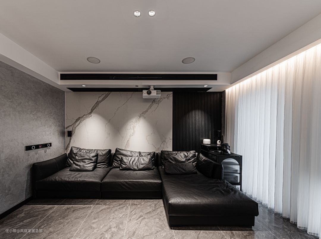 小户型,想要最大可能增加空间收纳,可以将空间全部做成定制柜体。用投影代替电视,满足家人的观影需求。