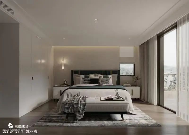二层为居住空间,将过厅通过艺术分割作为开放空间与私密空间的缓冲,包含两个卧室、公共的书房空间、休闲区和衣帽间。