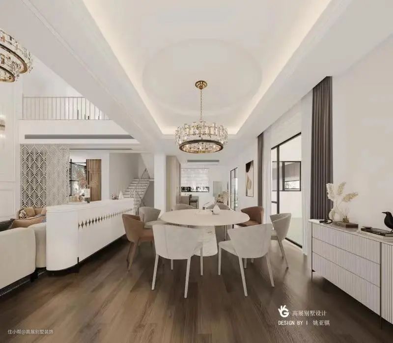 开放式客餐厅是当下的设计主流,相较于独立的功能区设计,开放式的空间更显通透宽敞、可促进家人间的互动与交流。