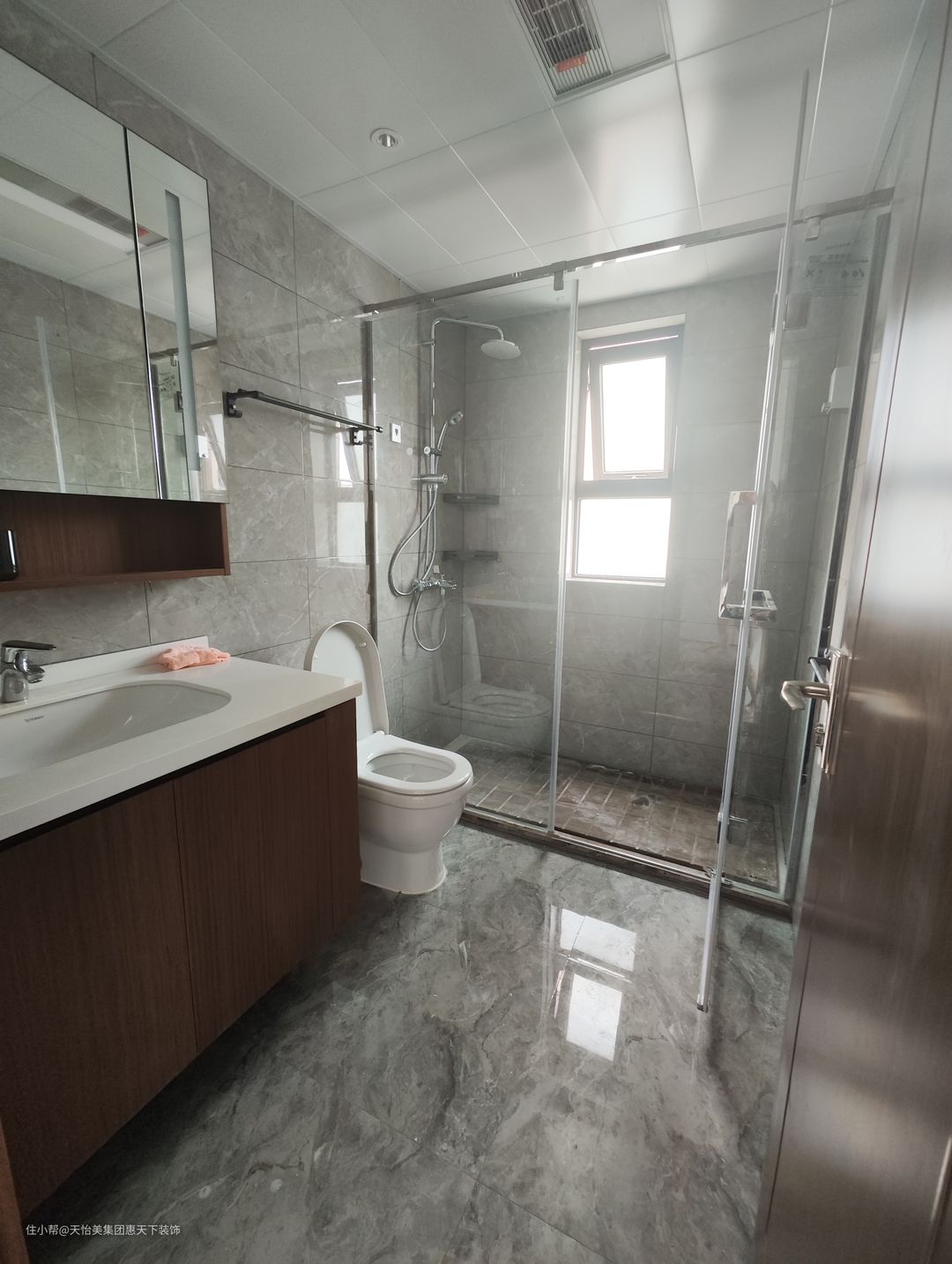 3、卫生间的色彩种类最好不要超过三种,卫生间更强调的是实用性,在实用的基础上在发挥它的美观,对于大多数家庭来说,尽量以简洁大气位置,同色系的瓷砖在视觉上可以进行点缀呼应,也更符合当下的审美。