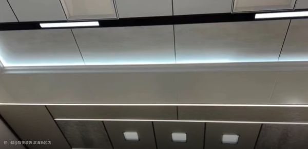 4、厨房卫生间用石膏板吊顶,谁都知道石膏板吊顶线条更少更简洁,可以多点位设置灯光,效果出来简约又好看,其实卫生间用石膏板吊顶也不是说绝对不行,但是他真的有可能会出现脱落发霉这样的问题。再看那个价格,用在厨卫的石膏板需要专用的防水石膏板,价格就比普通的石膏板贵了好多,再加上防水腻子防水漆,这些算起来肯定是不划算的,再说功能家里又不是酒店酒店那样装饰,为了好看,使用率也没那么高,但居家过日子,这个厨房卫生间的,使用率就高,而且里面有潮湿能力,是防水,但日积月累下来的,即使用的是效果最好的材料,还是避免不了以后会开裂发黄,长霉点这样的问题,再加上现在的卫生间装修,水电管道大多都是走在顶上面的,石膏板吊顶也能预留检修口,但那么小的一个检修口操作起来也不方便,而且打扫卫生的时候也不是很好搞吧,所以这个厨房卫生间的吊顶还是建议用集成吊顶,经过时代的发展,技术的更新,集成吊顶已经相当成熟了,抗潮防霉耐刮好打扫,万一水管电线出了问题,自己就可以爬上去看看,铝扣板吊顶一样可以开孔,多点位安装筒灯,而且现在不光有300×300的正方形铝板,还有300×600的长方形的,还有一米2×2米四的蜂窝大板,不光能安装筒灯,还能嵌入线条灯,高级感一点都不比石膏板吊顶差,甚至都已经超过了石膏板吊顶