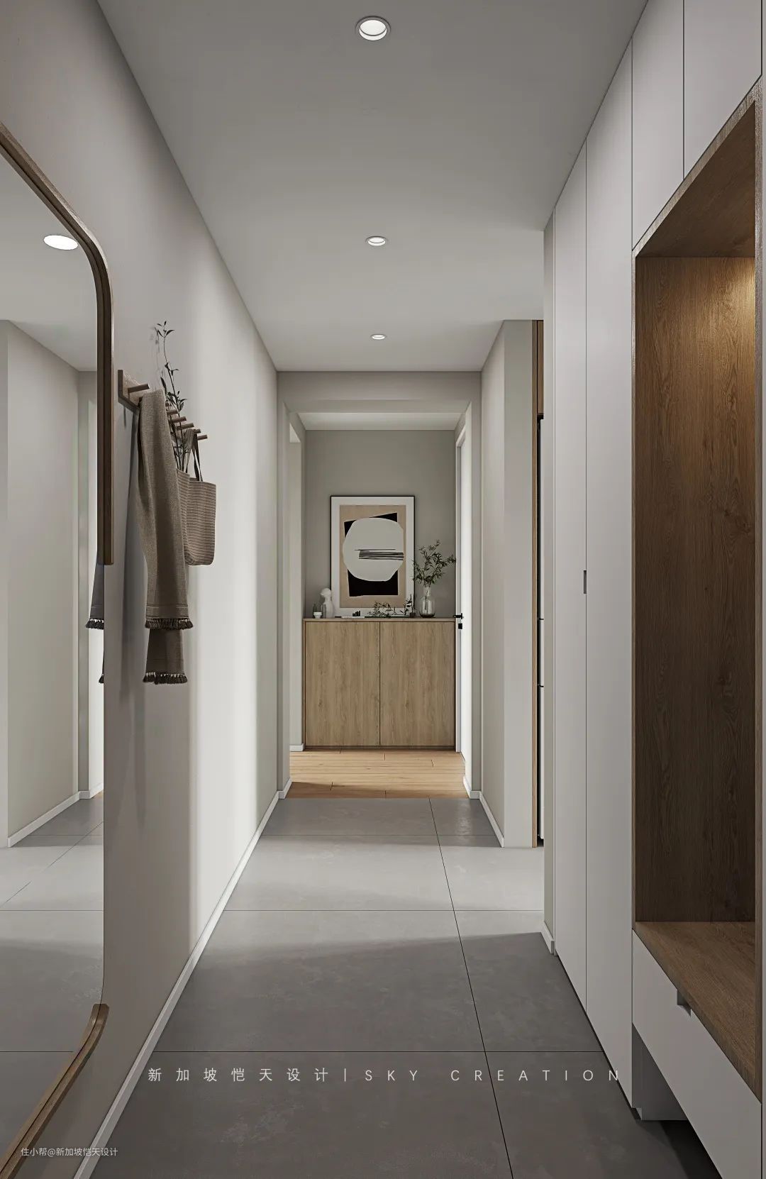 而镜子、换鞋凳、挂衣钩也能为回家、出门增加了不少的便捷。
