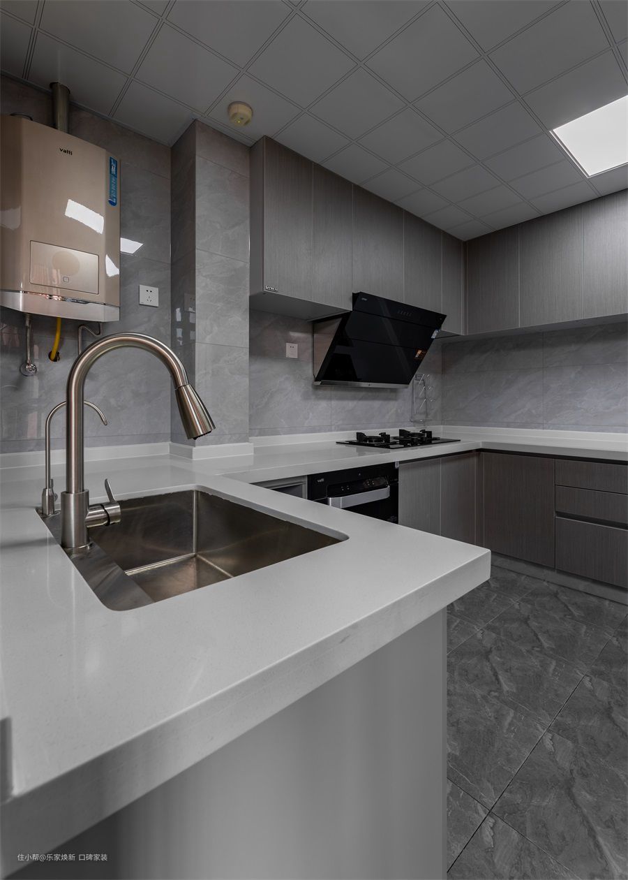 对于家庭厨房来说,橱柜台面最为合理的是不同高度设计,即炒菜区要低一些,洗菜区要高一些,因为不同的姿势会让人体的腰部和手肘部处于不同的高度,回想一下,是否是在洗碗时需要弯腰所以腰疼,是否是在炒菜时需要抬着胳膊所以肩膀疼。