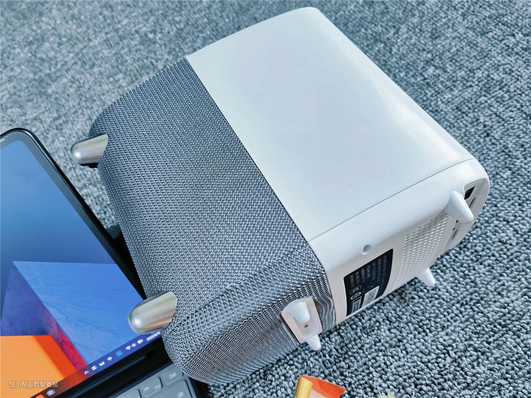 至于封闭式光机,好处在于工作噪音特别小,我人坐在投影仪旁边喝茶,基本都听不到机器运作时的噪音,这一点特别好。同时散热系统也特别给力,散热器从机器吹出来的风力很强劲,抚摸机身最热的部位,也仅仅是比手温高一丢丢,没出现那种过热的状况,散热好,对于机器的使用寿命来说,就是最大的保障之一。