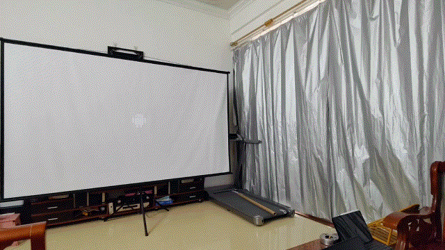 话说我这个幕布是我之前的投影仪使用的,可惜那个投影仪某次使用中摔坏了,又过了保修期,要修很贵就丢掉了剩下这块幕布。然后这次在购买这台泰捷T1s投影仪的时候,就特意问了下客服小姐姐,能不能送块100寸的幕布,结果人家小姐姐说送不起,投影仪价格已经打了超级优惠价了,再送要亏本,要加钱才能送,然后我想了想也释然了,这台投影仪价格这么平民,的确再送的话也确实不现实,毕竟一块100寸的普通幕布也得100来块钱,不能太贪心了,反正我这块120寸的幕布还挺新的,虽然大是大了点,能用就好。
