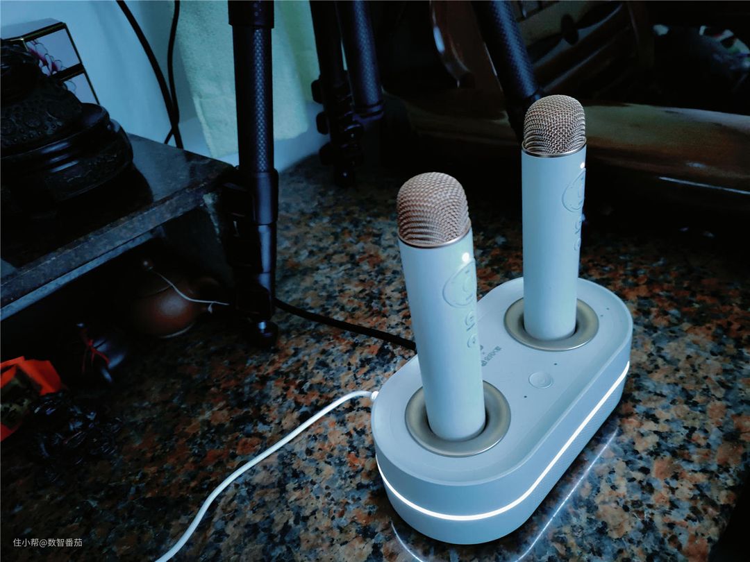 周末还可以连接一些外设,如唱K设备,和孩子们唱唱歌,特别方便,同时投影的超大屏唱起歌来就如同在KTV一样,特别棒!