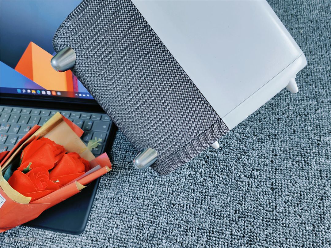 整个机身的主材料为抗阻燃材质,上白下灰,观感很吸睛,下半部分的灰色网,手感有点毛茸茸的,很特别,不知道是什么材质,手感很舒贴。