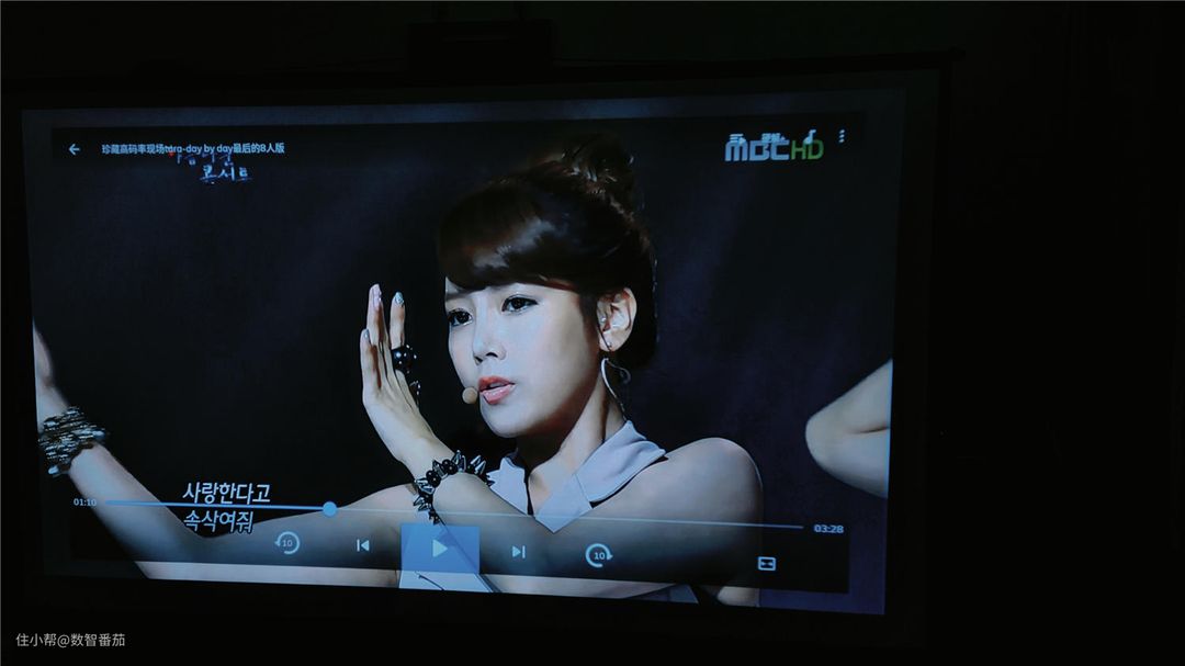 环境光线比较亮的投射效果,也是清晰可见的,不过我个人对于明亮环境下的投影效果并没太大的要求。说句实在的,家用投影仪,就算是白天观影,我都会拉上窗帘观赏影视,谁没事在光亮的环境下用投影仪观影?这很不科学也不实在。除了公用场合需求,特殊的公用需求才会在光亮的环境下使用,一般公司会议需要,也都是在暗光环境下进行投影。