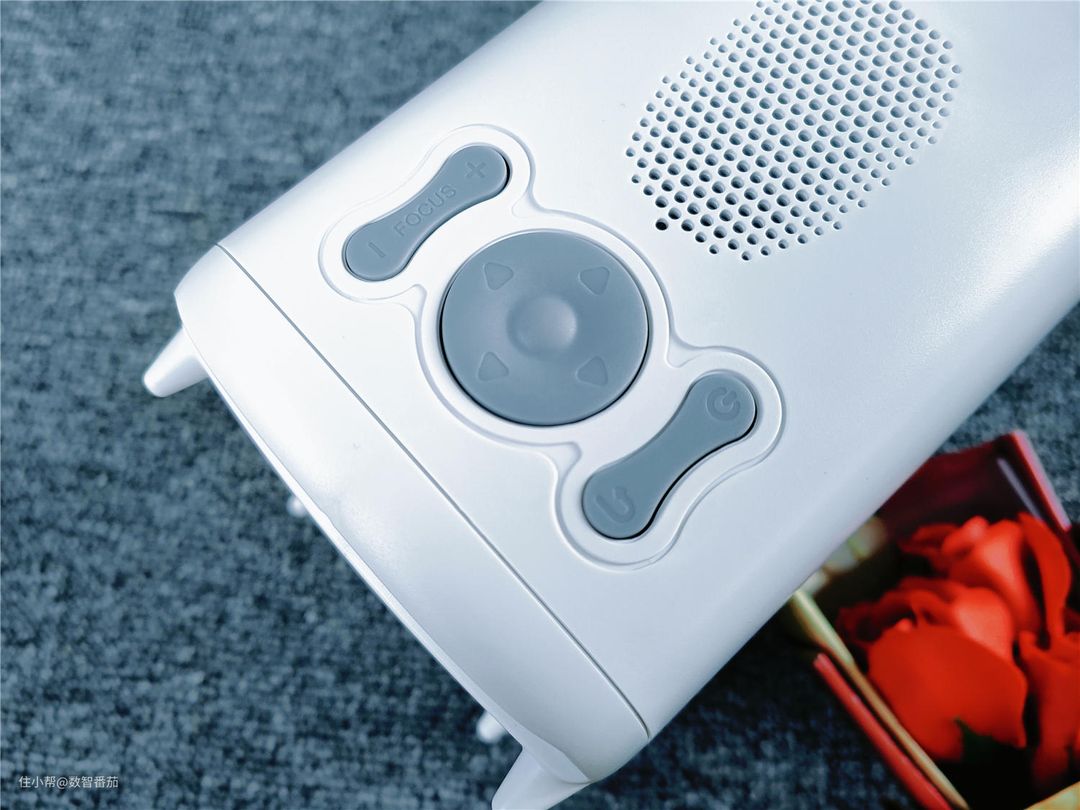 小巧便利,随处可放限制性小,放在卧室朝天花板投影,躺在床上看影视也特别方便,投墙上也特别高清。