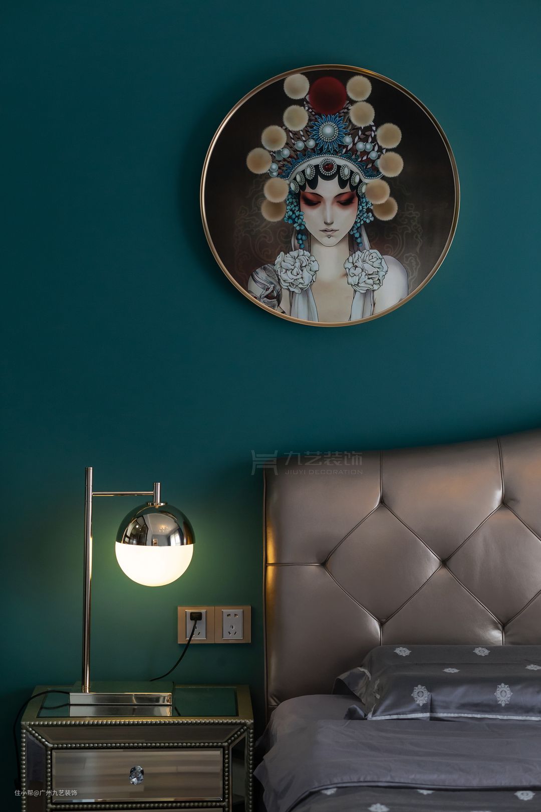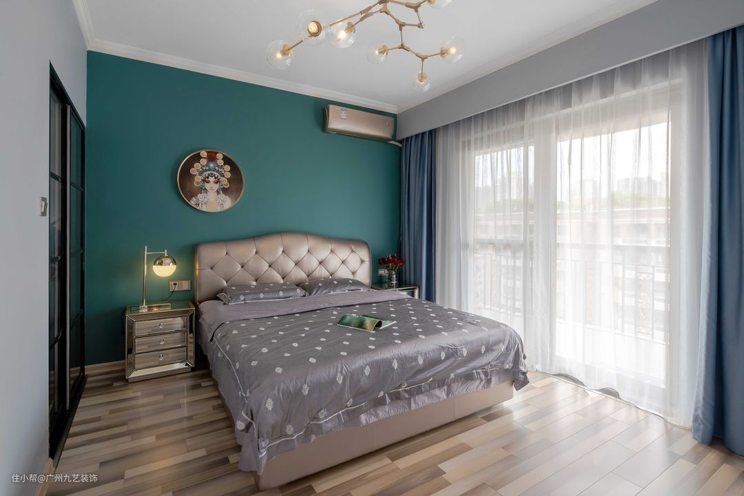 卧室延续了整屋的墨绿色,金属质感的加入, 让整个空间现代感十足。
