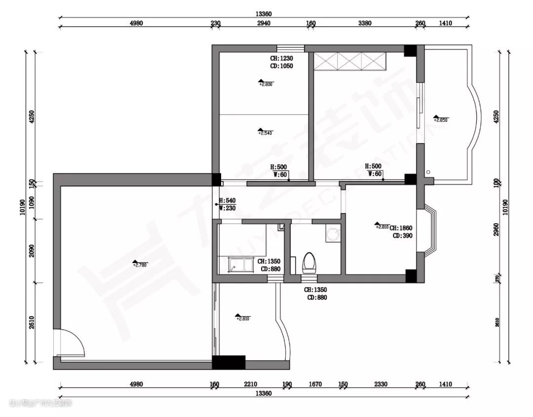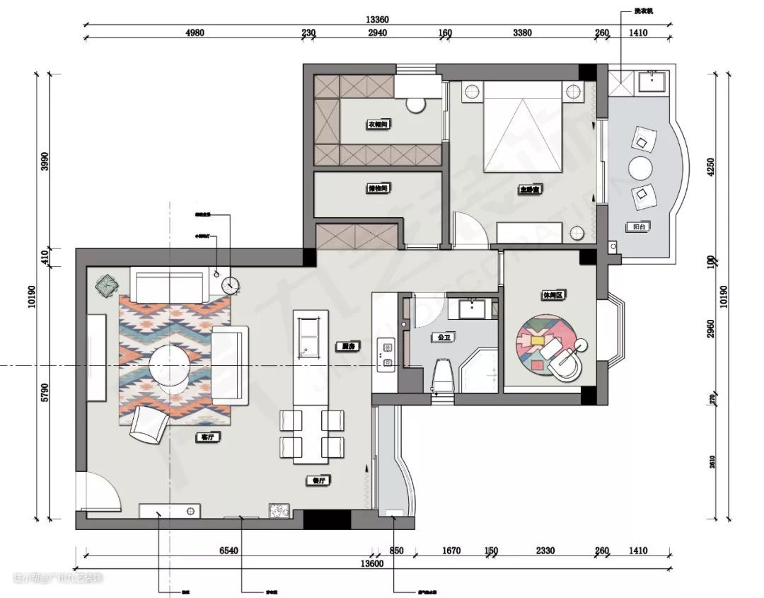 1. 拆掉了原封闭式厨房、阳台,改成与客餐厅一体化的开放式厨房。