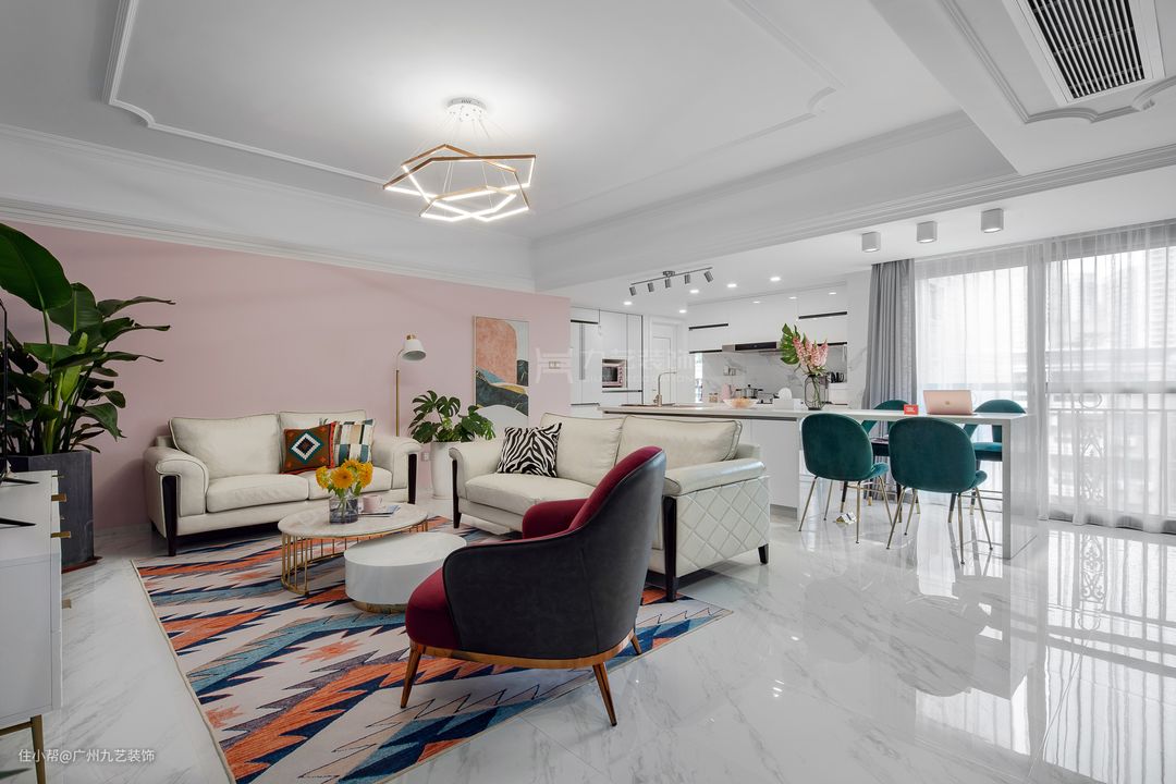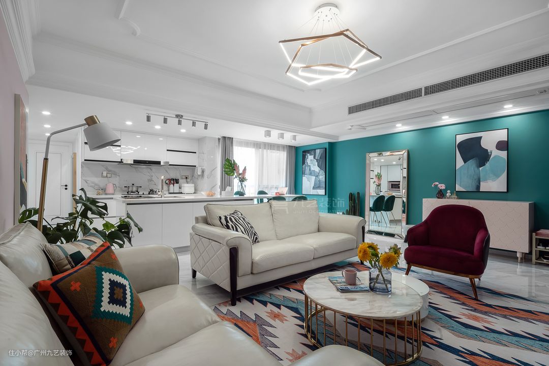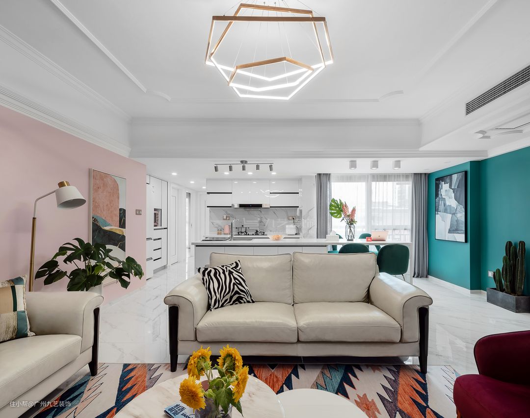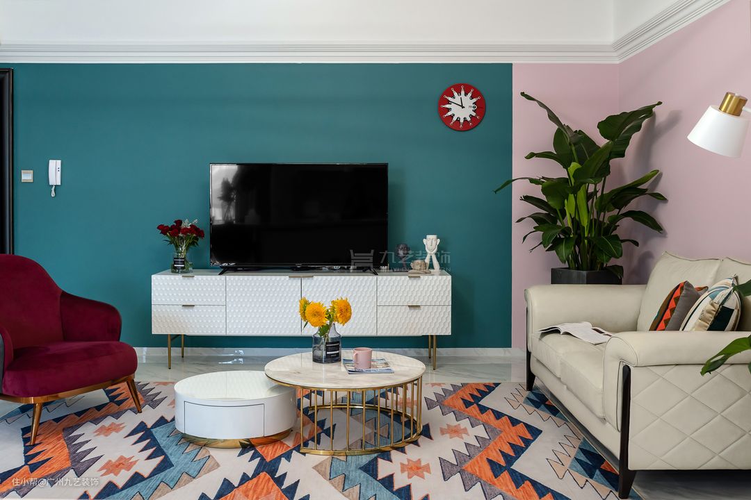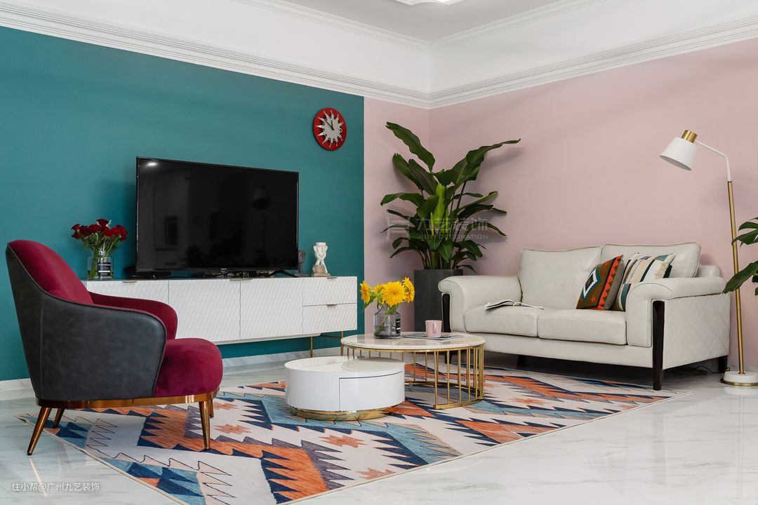 客厅使用了丰富的色彩和几何图案,动感有活力。