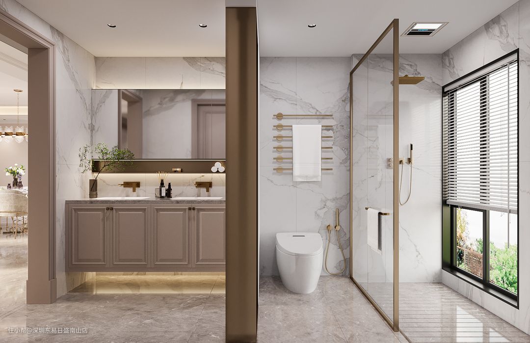 卫生间干湿分离,洗手台外置,玫瑰金增加质感,简约高级