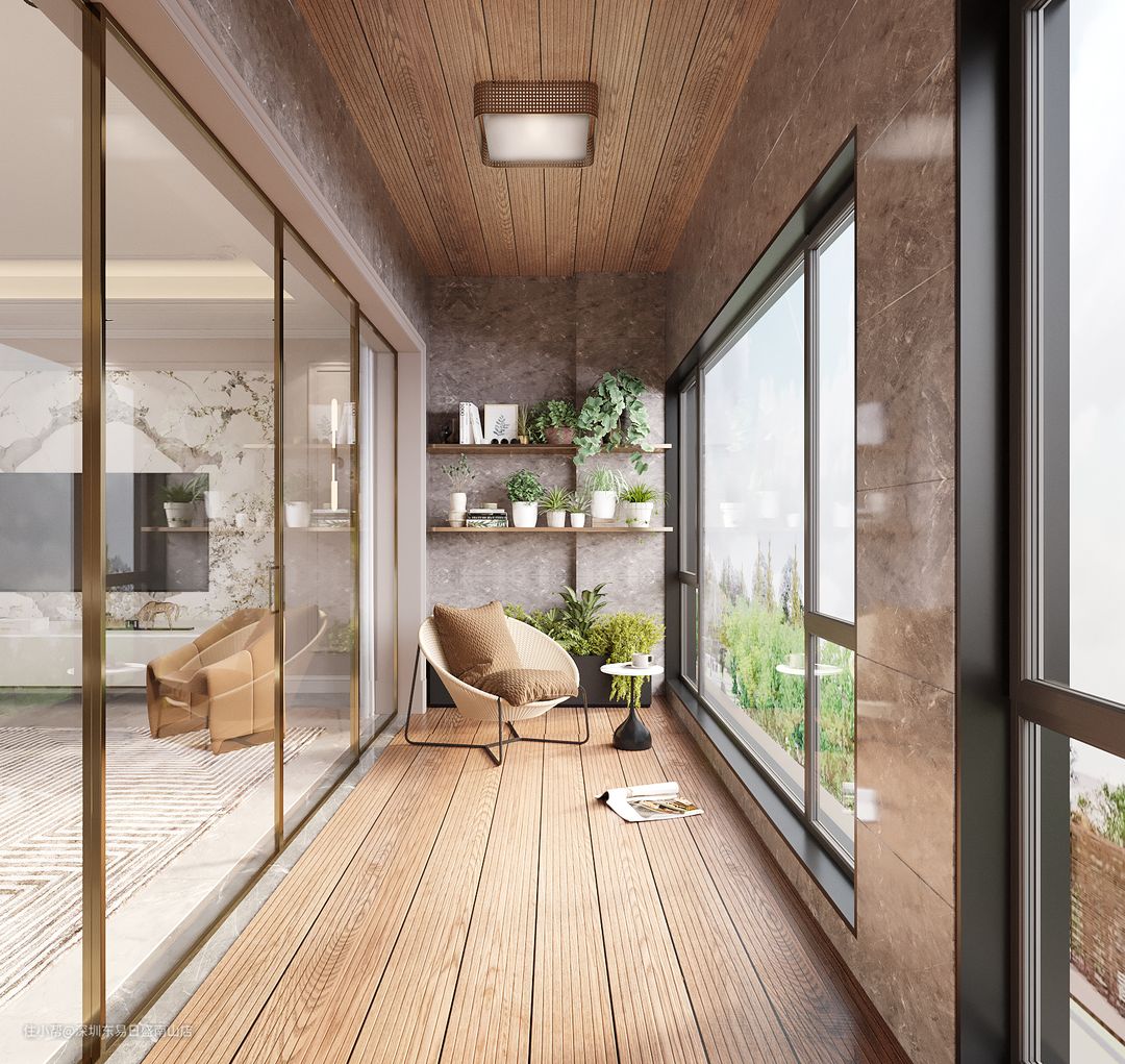 阳台做休闲区,木地板和高级灰瓷砖,丰富空间的层次刚,高级灰的大理石瓷砖,质感满满!