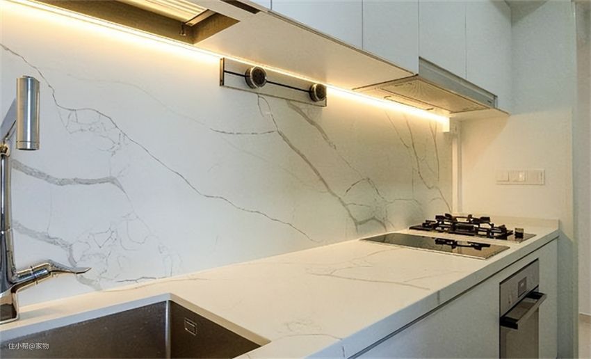 厨房墙面铺大板,缝隙少显档次,但确实没必要。因为陶瓷大板实在是太贵了!