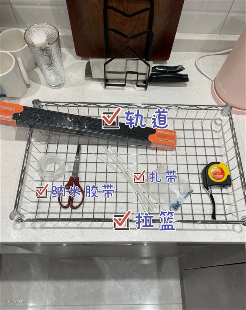 想省钱可以自己做轨道拉篮。网购好材料,动手安装一下,效果也不差。