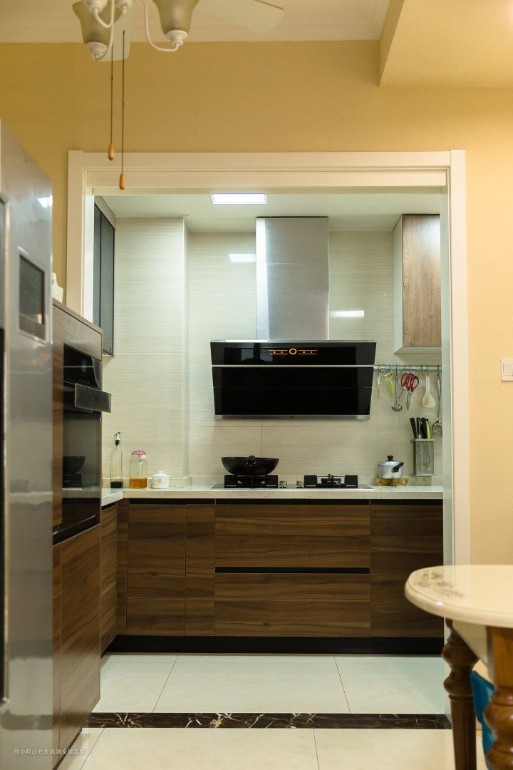 原木橱柜与白色墙面组成最强CP,清新质感扑面而来。U型台面的布置充分利用了墙面空间,操作分区明确,合理的动线节省做家务的时间和体力,也赋予了厨房更多的可能性。
