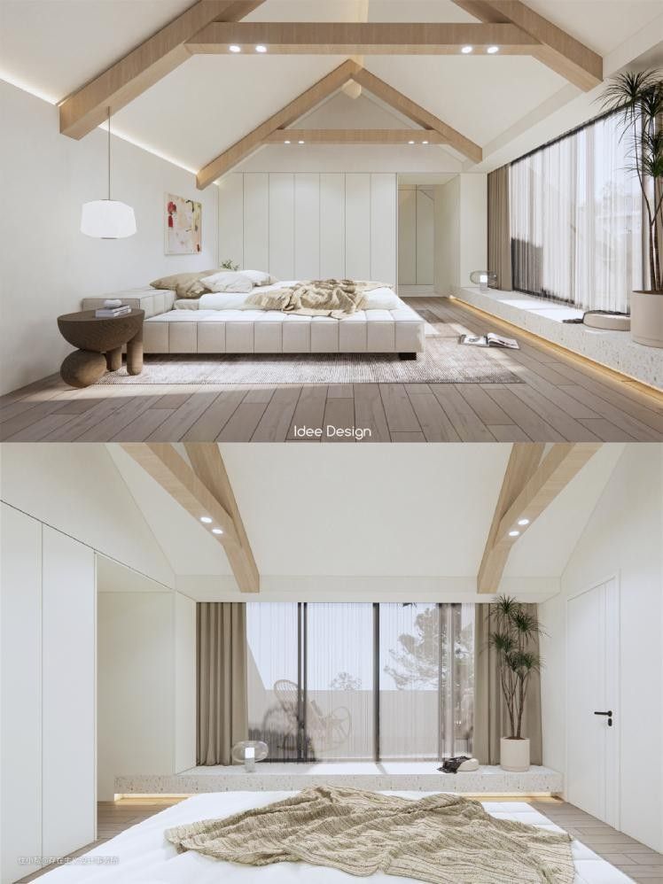 细腻的纹理间充满着温馨与惊喜。房间位于复式楼顶,全白衣帽储物间,简约且精致