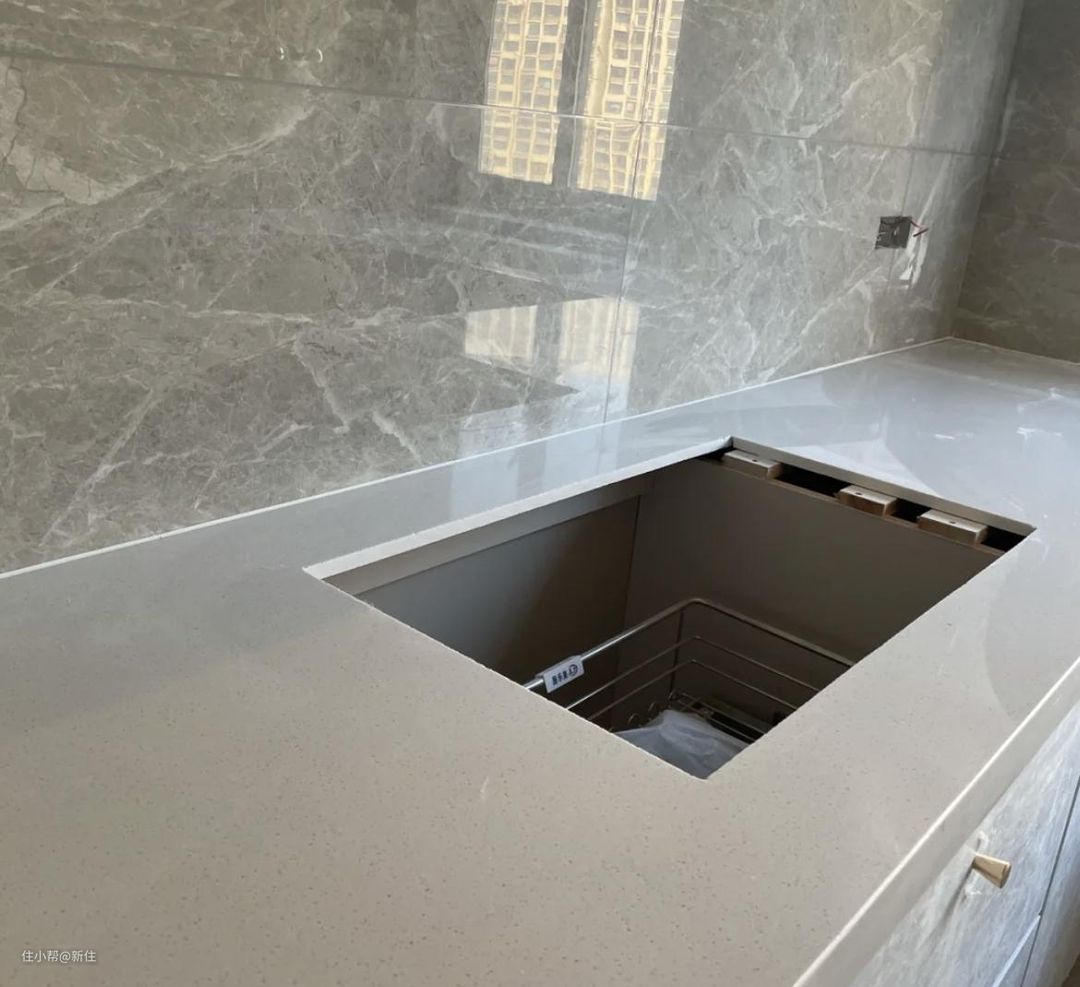 ③台面全贴膜,石英石台面怕渗色,自己又做不到随手清洁,那不如学学人家,像手机一样,给台面也贴个膜。