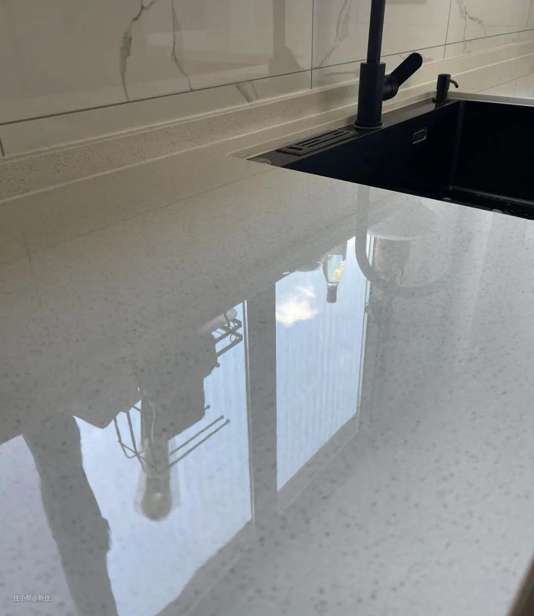 贴上后,不仅看起来更亮堂干净了,而且好擦很多,不担心油污渗入石英石里面,用起来更随意。