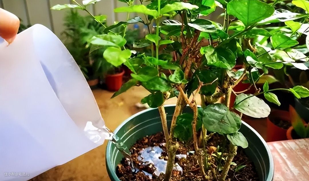 给花浇水时,定期加上一些营养液,或者使用雨水、养鱼的水浇花,都是不错的选择。