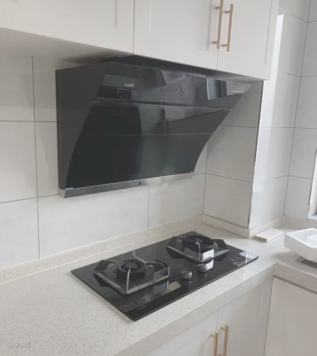 所以,在做橱柜之前,务必选择好油烟机型号,确定烟机和台面最佳安装距离,简单理解为,按照油烟机尺寸定制吊柜,比既定空位找补油烟机容易得多。