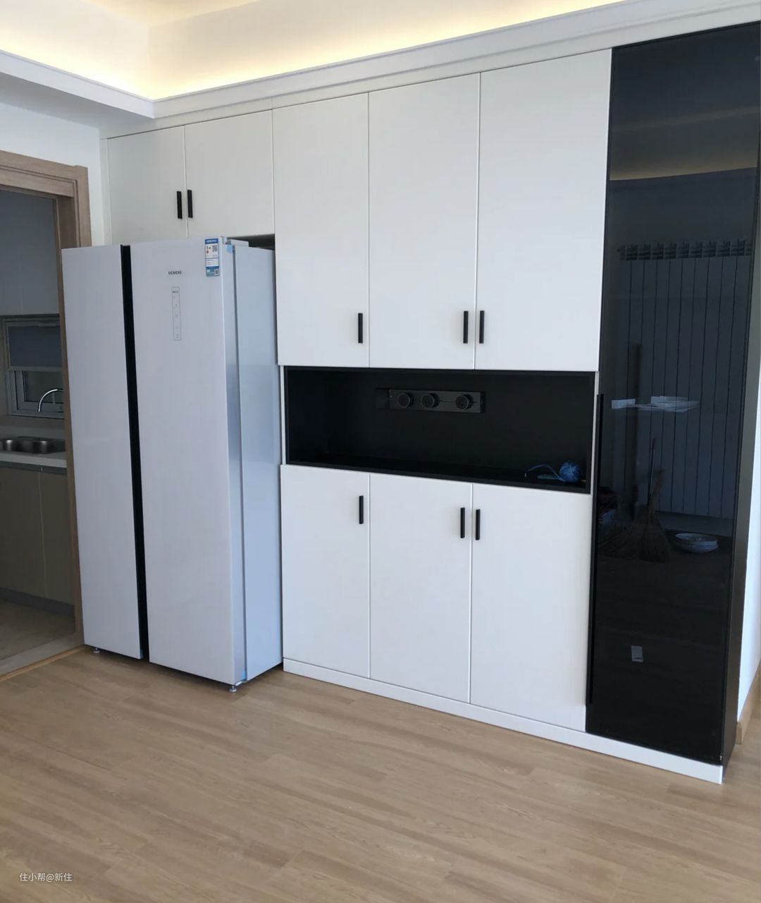 一旦出现这种情况翻车,你也不能重做柜子,也不能换个冰箱,只能认栽了,也提醒大家,要想严丝合缝,一个尺寸都不能落下。