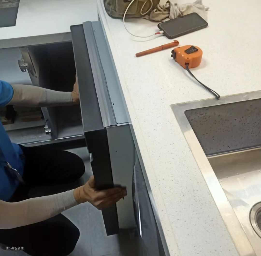 洗碗机翻车的情况有预留尺寸不对,洗碗机推不进去的,水电位置留错,机器靠不了墙边的,橱柜踢脚线影响洗碗机开门的等等。