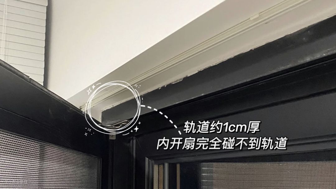 上图就是轨道厚度基本等于窗户包边厚度,窗户外开不存在问题,而窗户刚好又是内开,开窗会碰到轨道,因此翻车。