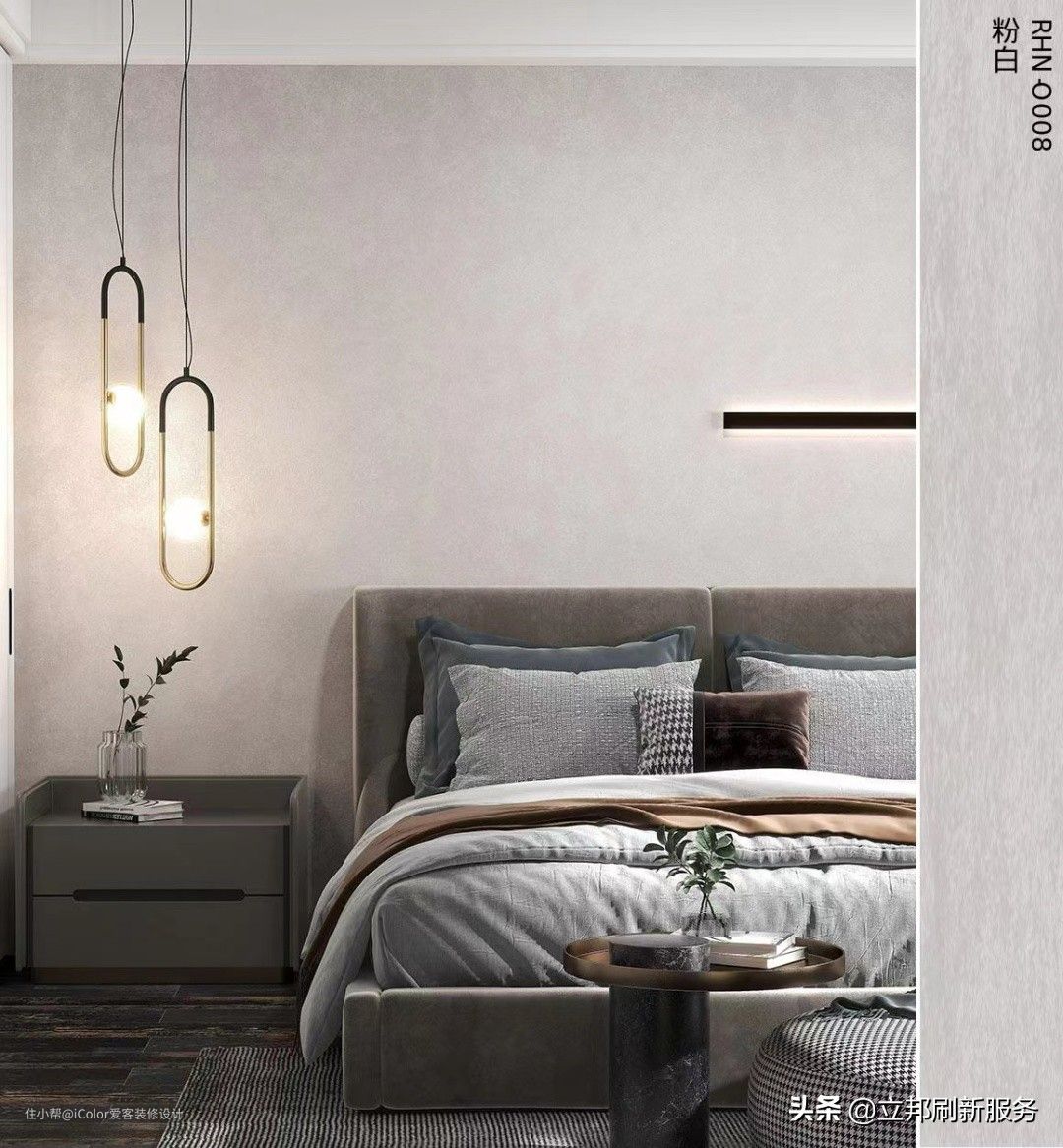不想用大白墙来应对一切?也没关系,现在艺术涂料都是多色的,可以选择喜欢的色彩进行调和,但一定要注意和周围的软装配色相协调。所以一般选色还是以浅色,或是莫兰迪色居多。